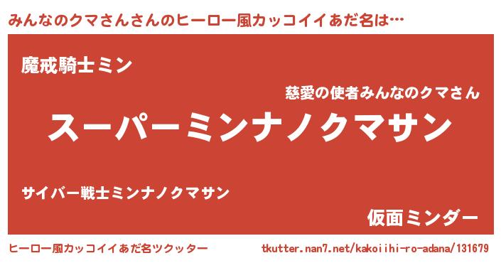 | 男性向けラノベタイトル風あだ名 | 『みんなのクマさんの憂鬱』 |
