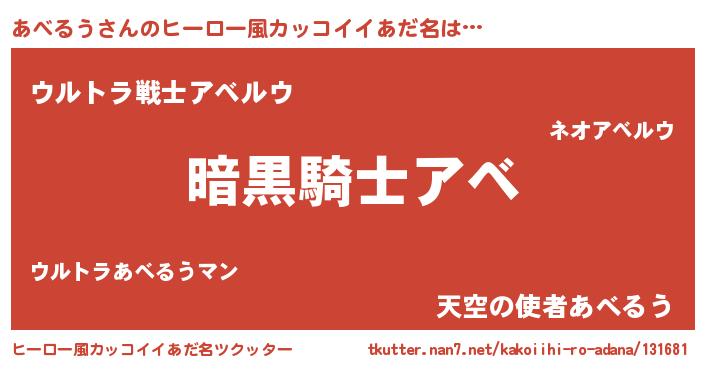 | 意味不明あだ名 | 『とにかく怪しいあべるう』 |
