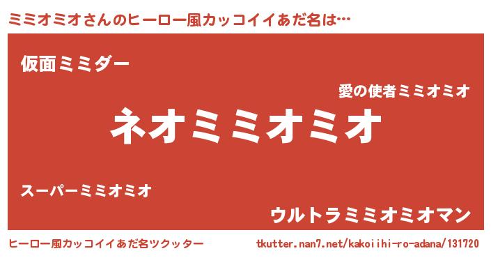 | 男性向けラノベタイトル風あだ名 | 『ミミオミオという概念が存在しない退屈な世界 』 |