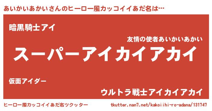 | 男性向けラノベタイトル風あだ名 | 『あいかいあかいの憂鬱』 |