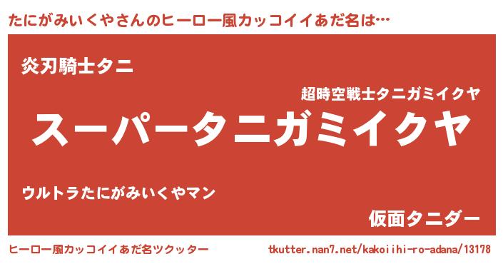 | 胡散臭い通販商品みたいなあだ名 | 『億万長者になれる霊験あらたかなお札…その名も「たにがみいくや」』 |