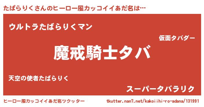 | 胡散臭い通販商品みたいなあだ名 | 『伝統あるサプリメント…その名も「たばらりく」』 |