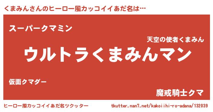 | 男性向けラノベタイトル風あだ名 | 『クマミンスレイヤー』『くまみんの憂鬱』 |