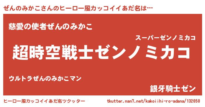 | 男性向けラノベタイトル風あだ名 | 『ゼンノミカコスレイヤー』 |