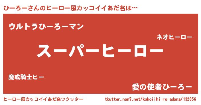 | 男性向けラノベタイトル風あだ名 | 『ヒーロースレイヤー』『ひーろーの憂鬱』 |