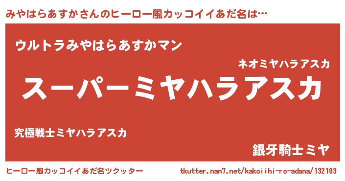 みやはらあすかさんのヒーロー風カッコイイあだ名をツクッター!