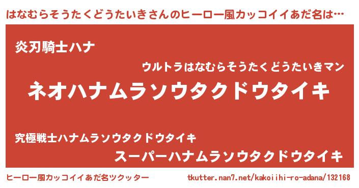 | 伝説のあだ名 | 『聞きしに勝る勇者はなむらそうたくどうたいき』 |
