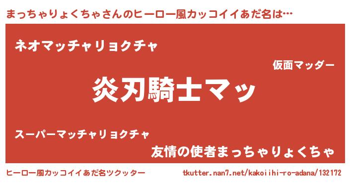 | 胡散臭い通販商品みたいなあだ名 | 『全米が絶賛したサプリメント…その名も「まっちゃりょくちゃ」』 |