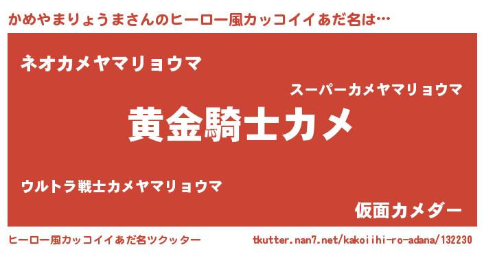 | 男性向けラノベタイトル風あだ名 | 『はたらくかめやまりょうまさま!』 |