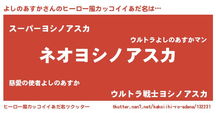 | 胡散臭い通販商品みたいなあだ名 | 『来世でも幸せになれる健康食品…その名も「よしのあすか」』 |