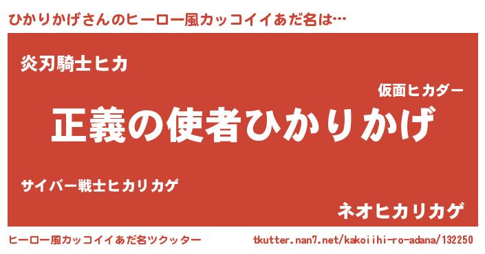 | 男性向けラノベタイトル風あだ名 | 『おまえをオタクにしてやるから、俺をひかりかげにしてくれ! 』 |