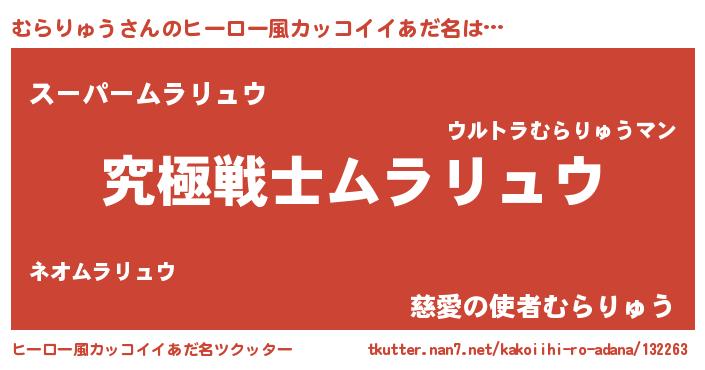 | 女子向けラノベタイトル風あだ名 | 『むらりゅうストレイドッグス』 |