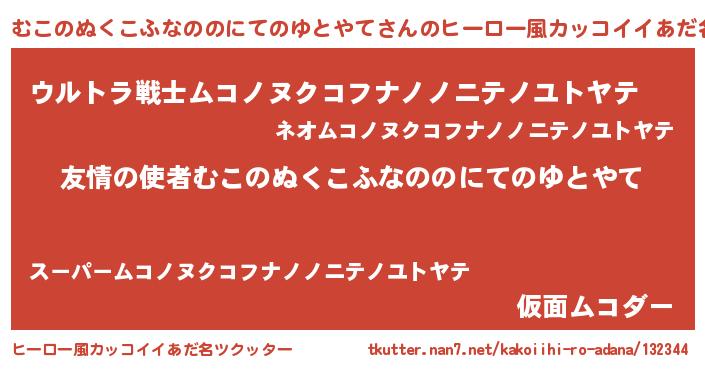 | ヘコむあだ名 | 『むこのぬくこふなののにてのゆとやて(小並感)』 |