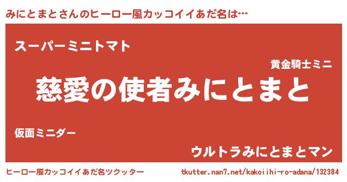 | 男性向けラノベタイトル風あだ名 | 『うちのみにとまとが世界を掌握している!』 |
