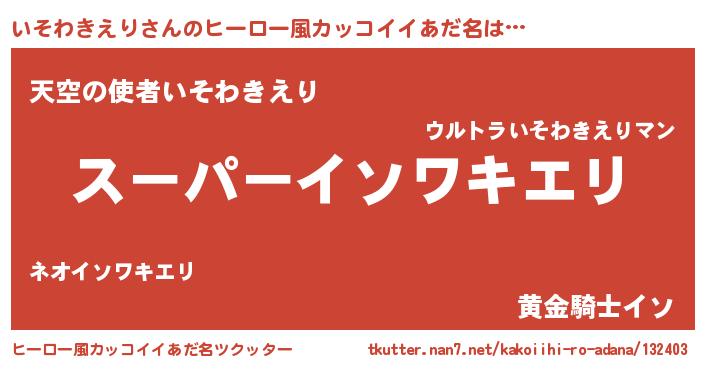 | 欧米人風あだ名 | 『マイケルいそわきえり』 |