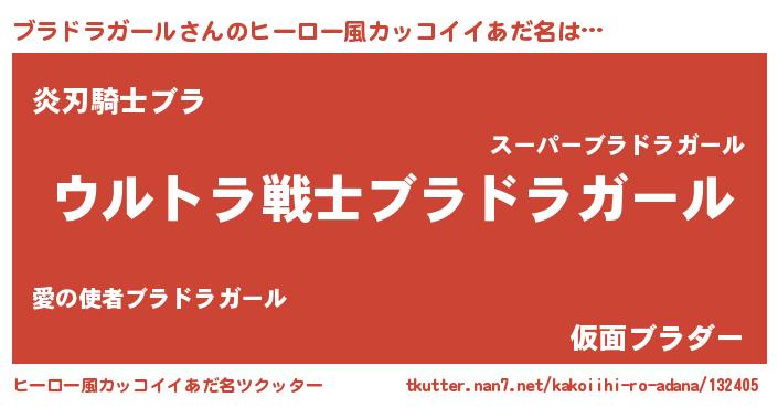 | 女子向けラノベタイトル風あだ名 | 『ブラドラガールなんてお断りですっ。』 |