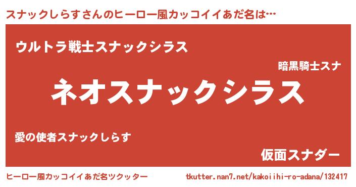 | 伝説のあだ名 | 『古より伝わる吟遊詩人スナックしらす』 |
