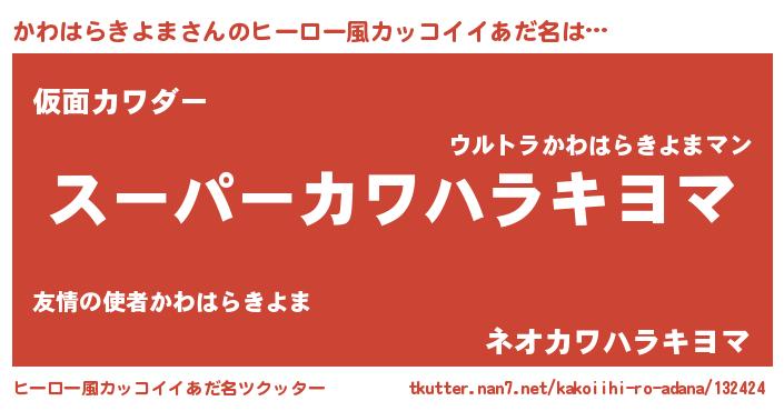 | 男性向けラノベタイトル風あだ名 | 『かわはらきよまに滅ぼされるだけの簡単なお仕事です』 |