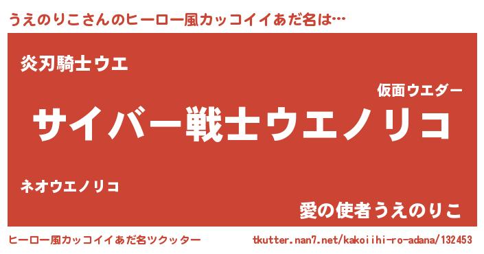 | ポケモン風あだ名 | 『ウエセウス』『ヒウエノリコ』 |