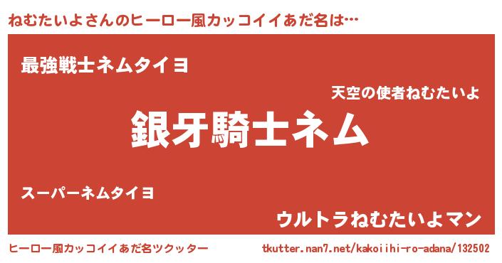 | ヘコむあだ名 | 『ねむ太郎』『酢こんぶ』『ねむにー』 |