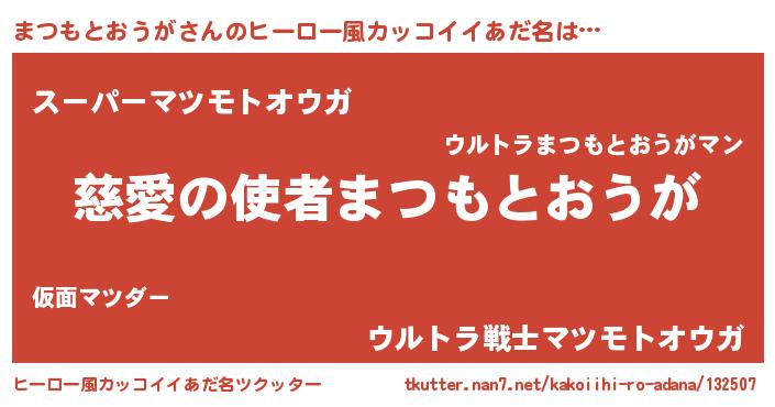 | 男性向けラノベタイトル風あだ名 | 『ノーゲーム・ノーマツモトオウガ』 |