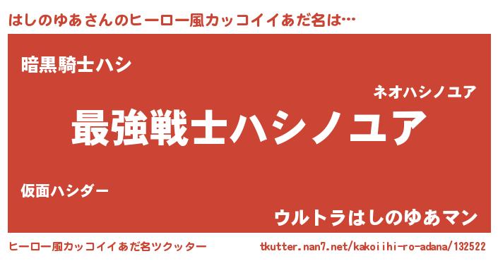 | ポケモン風あだ名 | 『ハシセウス』『ヒハシノユア』 |