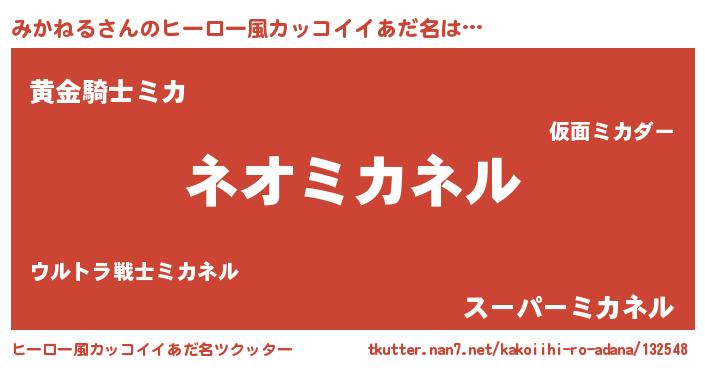 みかねるさんのヒーロー風カッコイイあだ名をツクッター!