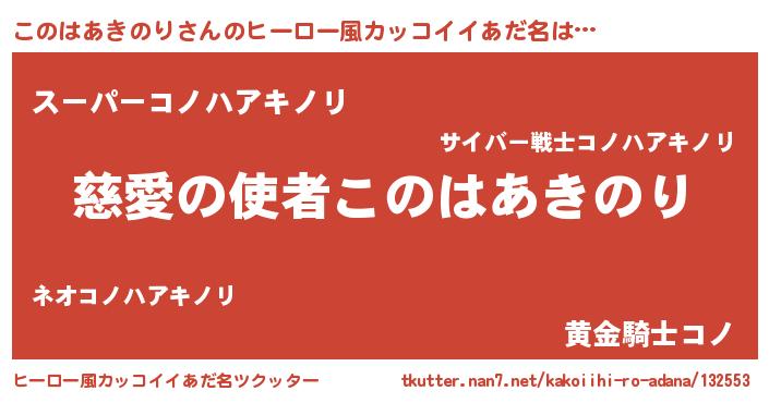 | 欧米人風あだ名 | 『アンジェラ・このはあきのり』 |