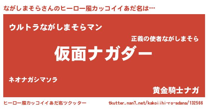 | 男性向けラノベタイトル風あだ名 | 『魔弾の王とながしまそら』 |