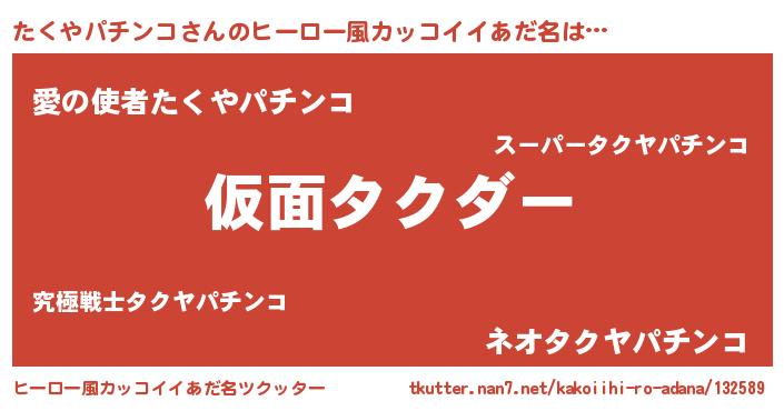 | 男性向けラノベタイトル風あだ名 | 『この素晴らしい世界にたくやパチンコを!』 |