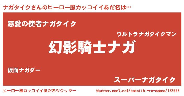 | 男性向けラノベタイトル風あだ名 | 『ナガタイクの嫁は女の子じゃないと思った?』 |