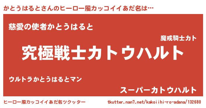 | 女子向けラノベタイトル風あだ名 | 『かとうはるとの玉の輿計画!』 |
