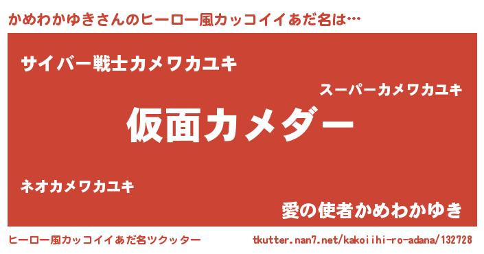 | 意味不明あだ名 | 『住所不定無職かめわかゆき(8歳)』 |