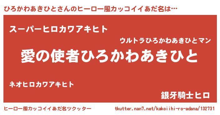 | 女子向けラノベタイトル風あだ名 | 『ひろかわあきひと恋絵巻』 |