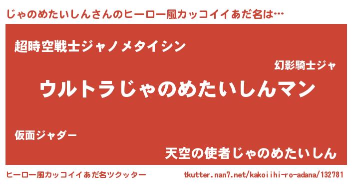 | 意味不明あだ名 | 『じゃのめたいしんフォーエバー』 |