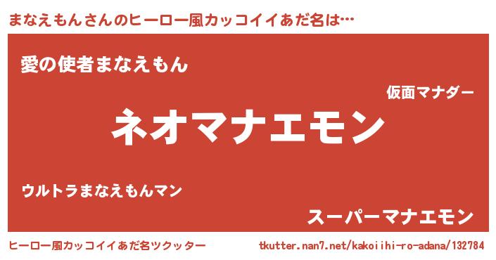 | 男性向けラノベタイトル風あだ名 | 『まなえもんという概念が存在しない退屈な世界 』 |