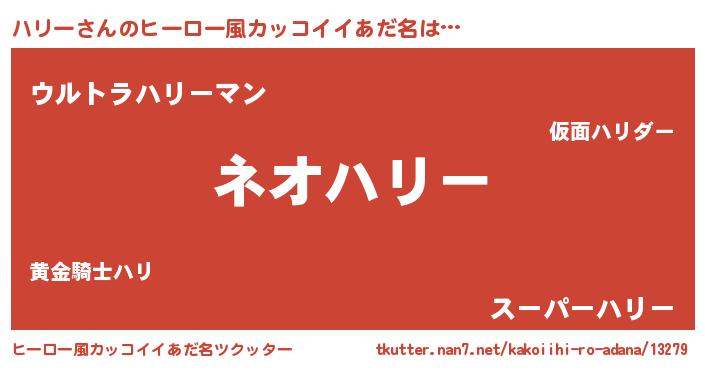 | 男性向けラノベタイトル風あだ名 | 『転生したらハリーだった件』 |