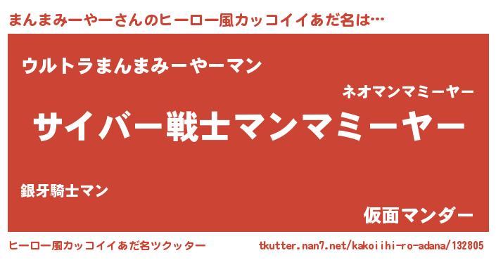 | 男性向けラノベタイトル風あだ名 | 『Re:まんまみーやーから始める異世界生活』 |