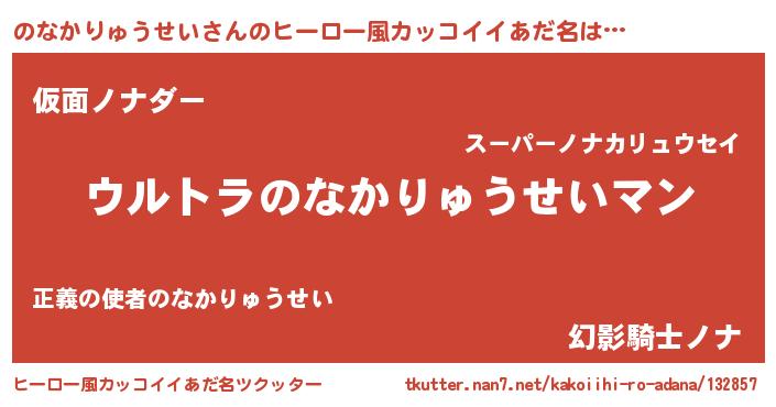 | 意味不明あだ名 | 『のなかりゅうせいフォーエバー』 |