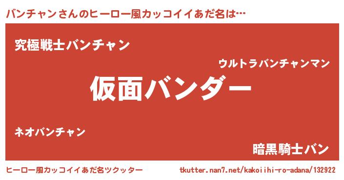 | 男性向けラノベタイトル風あだ名 | 『この素晴らしい世界にバンチャンを!』 |