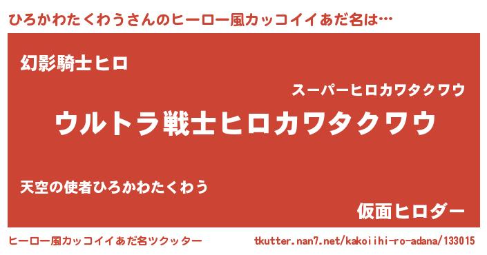 | 料理風あだ名 | 『ひろかわたくわうごはん』 |