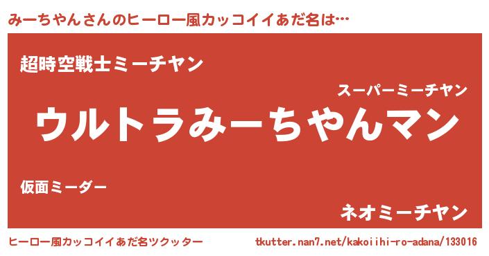 | 欧米人風あだ名 | 『みーちやんクリステル』 |