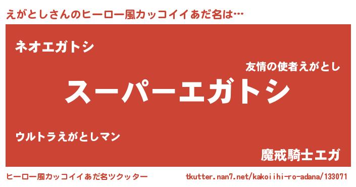 | 意味不明あだ名 | 『ペロリンえがとし』『永久保存えがとし』 |