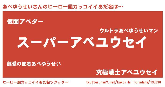 | 女子向けラノベタイトル風あだ名 | 『(仮)あべゆうせいのやんごとなき事情』 |