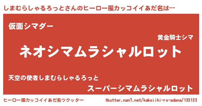 | 女子向けラノベタイトル風あだ名 | 『異世界で失敗しない100のしまむらしゃるろっと』 |