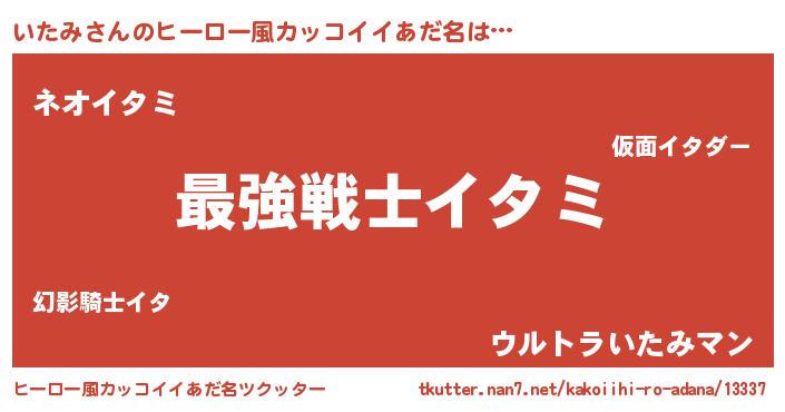 | 男性向けラノベタイトル風あだ名 | 『Re:いたみから始める異世界生活』 |