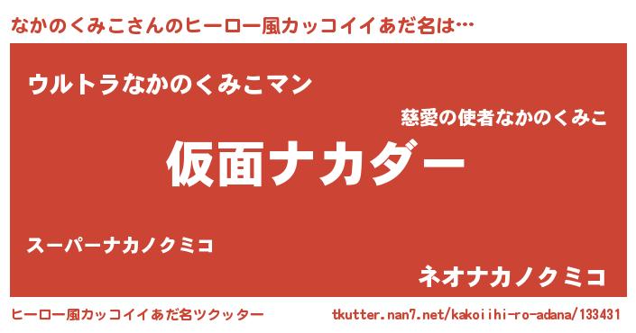 | 男性向けラノベタイトル風あだ名 | 『この素晴らしい世界になかのくみこを!』 |
