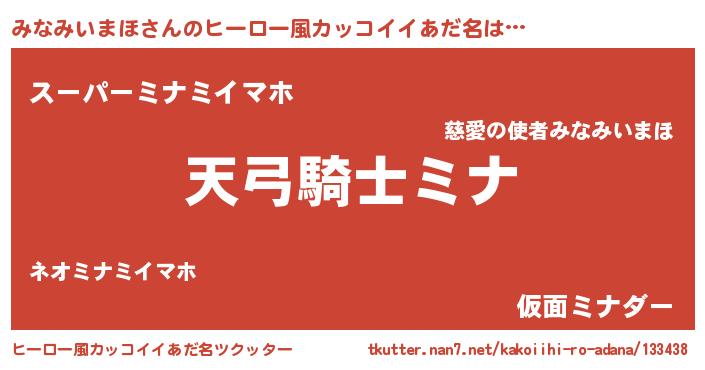 | 男性向けラノベタイトル風あだ名 | 『みなみいまほの嫁は女の子じゃないと思った?』 |