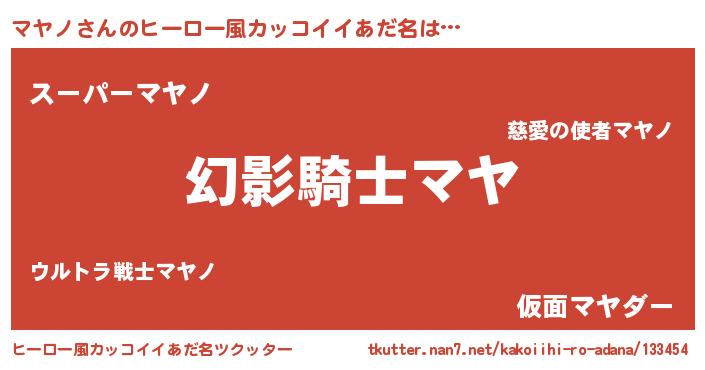| ファンタジー風あだ名 | 『ファントムマヤス』『マヤフェル』 |
