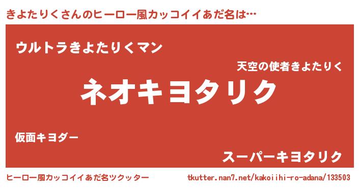 | 胡散臭い通販商品みたいなあだ名 | 『絶対に幸福をもたらす水素水…その名も「きよたりく」』 |